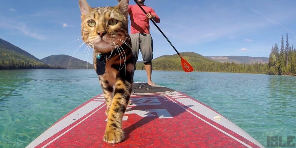 Most cats hate water, but this adventurous feline is living his best life on a paddleboard. Wearing tiny custom goggles, he’s watching the fish go by with total feline indifference. He’s officially more adventurous than most of us will ever be.