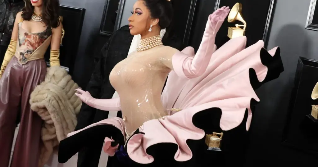 Cardi B didn’t just wear a dress; she wore a piece of art. For the 2019 season, she reached into the archives of Thierry Mugler (1995) to find a gown that resembled a pearl emerging from a shell.